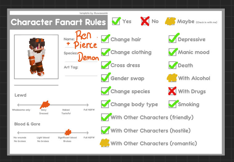 ⤿ Do not trace my art⤿ Using my art for profile pictures / banners is okay with credit⤿ Please tag me if you make a video edit with my art, I would love to see :)⤿ Do not use my real name publicly or try to find it if you don't know it⤿ Do not post or try to find my face
